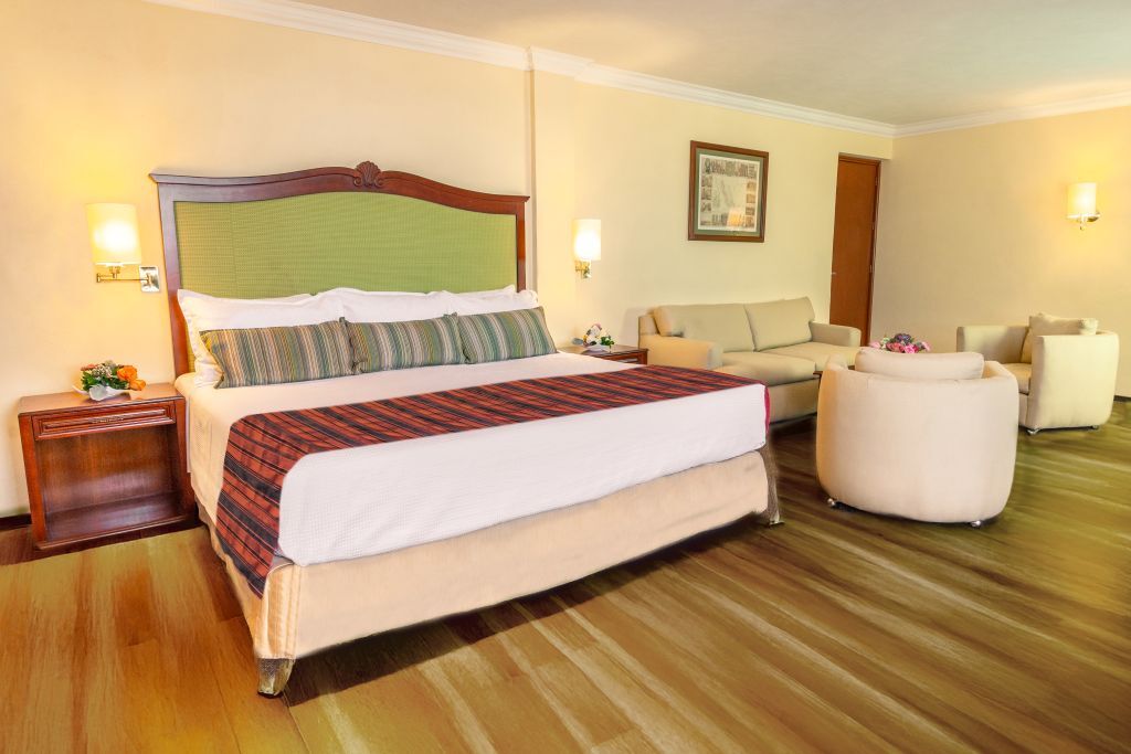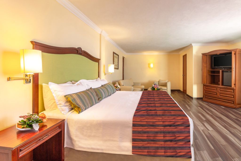 Nuestra suite más exclusiva ofrece sala independiente, vistas privilegiadas y una atmósfera que combina estilo clásico con comodidades modernas. Una experiencia superior en pleno centro de Aguascalientes.
